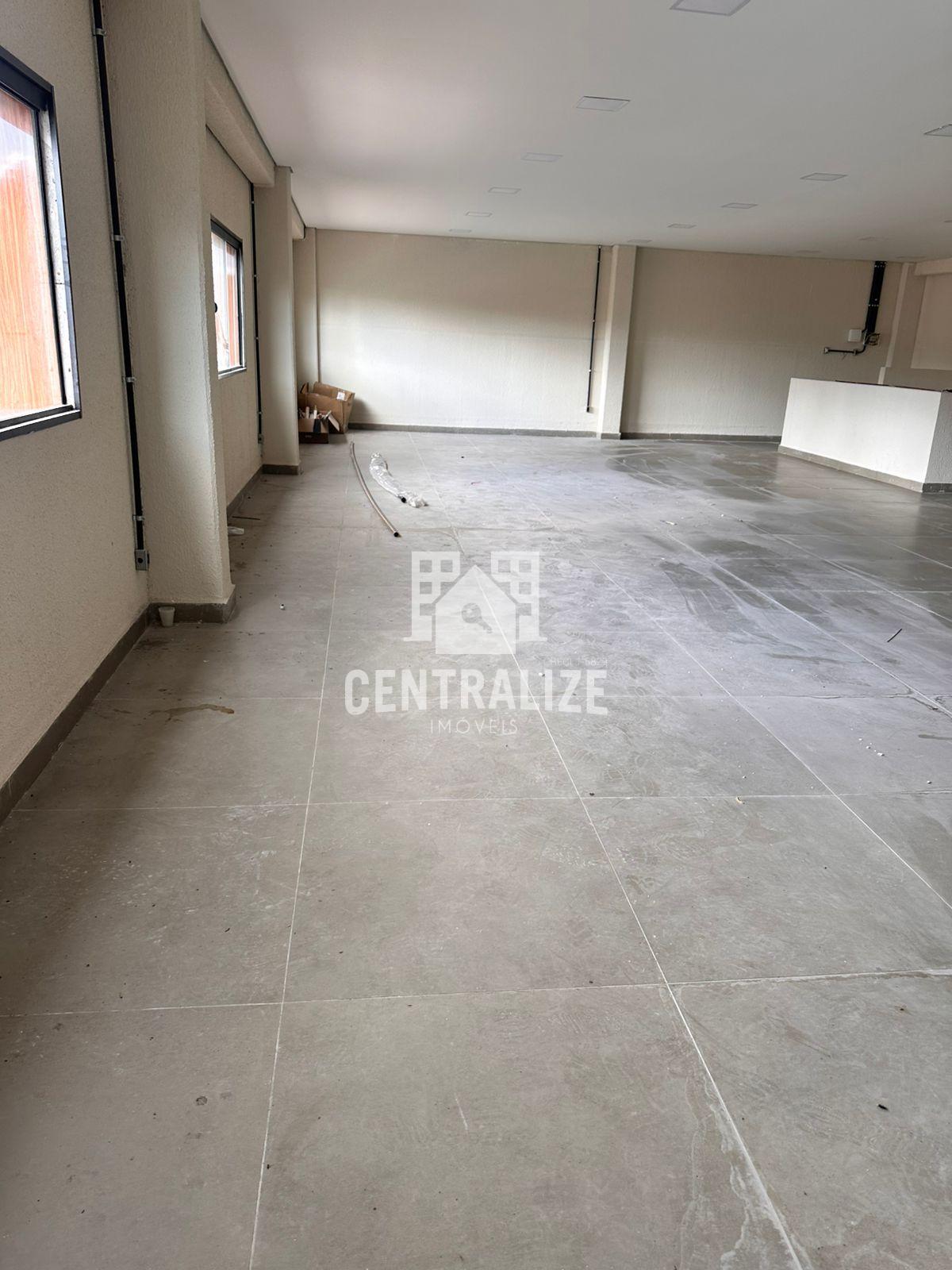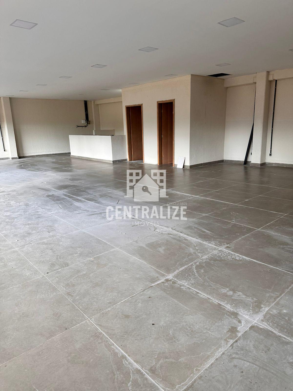 Ampla sala comercial no piso superior com aproximadamente 150 m² contendo 2 banheiros. Pode ser dividida de acordo com a necessidade.