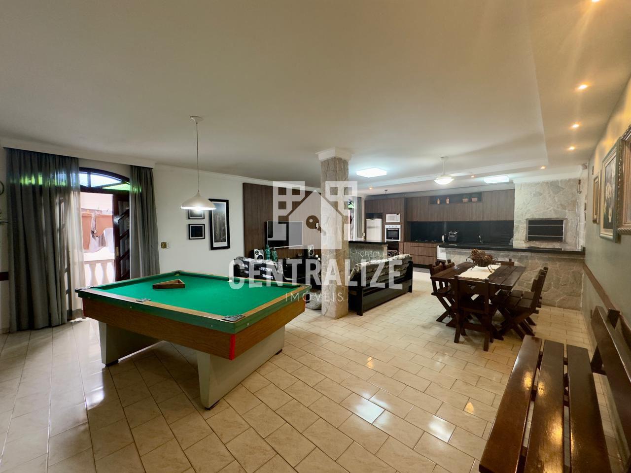 Excelente sobrado mobiliado com aproximadamente 680m², contendo 4 quartos, sendo 1 suíte c/ closet e hidromassagem, cozinha planejada e sala de jogos, sala íntima com lareira, sala de jantar, despensa, lavanderia, edícula com cozinha, 1 banheiro, 8 vagas de garagem, portão eletrônico e placas solares.