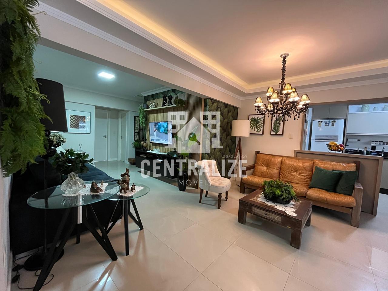 Apartamento mobiliado e decorado com aproximadamente 167m², contendo 4 quartos, sendo 1 suíte, sala para 2 ambientes, cozinha, área de serviço, sacada com área intima, área gourmet com churrasqueira e 2 vagas de garagem.