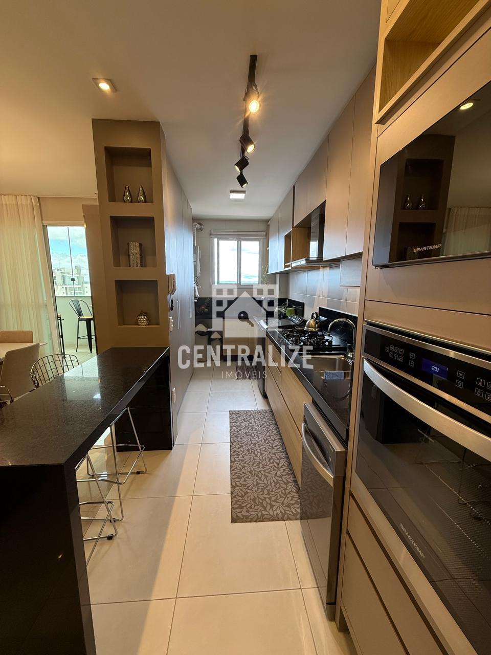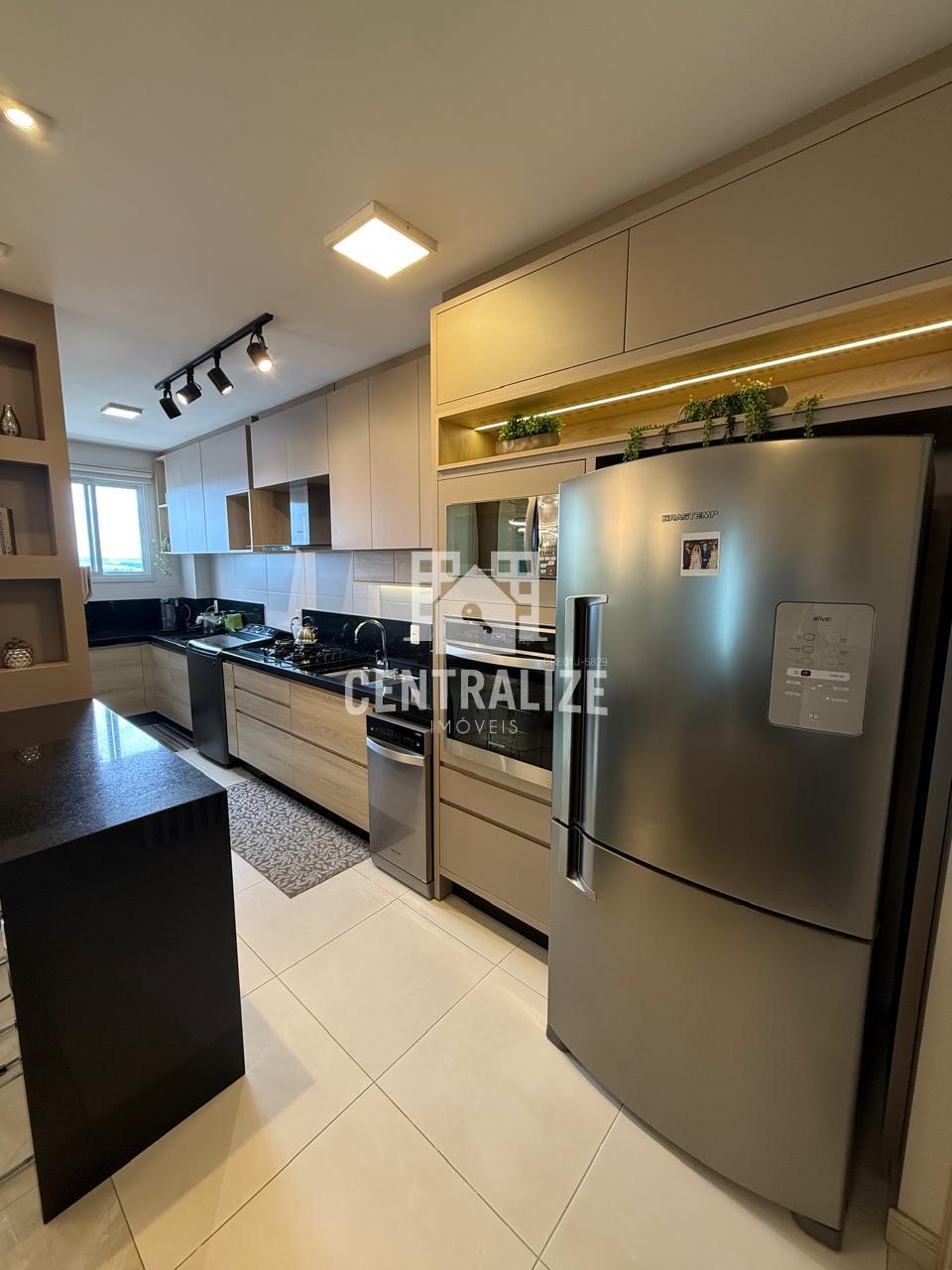- Cozinha em conceito aberto e com móveis planejados ;