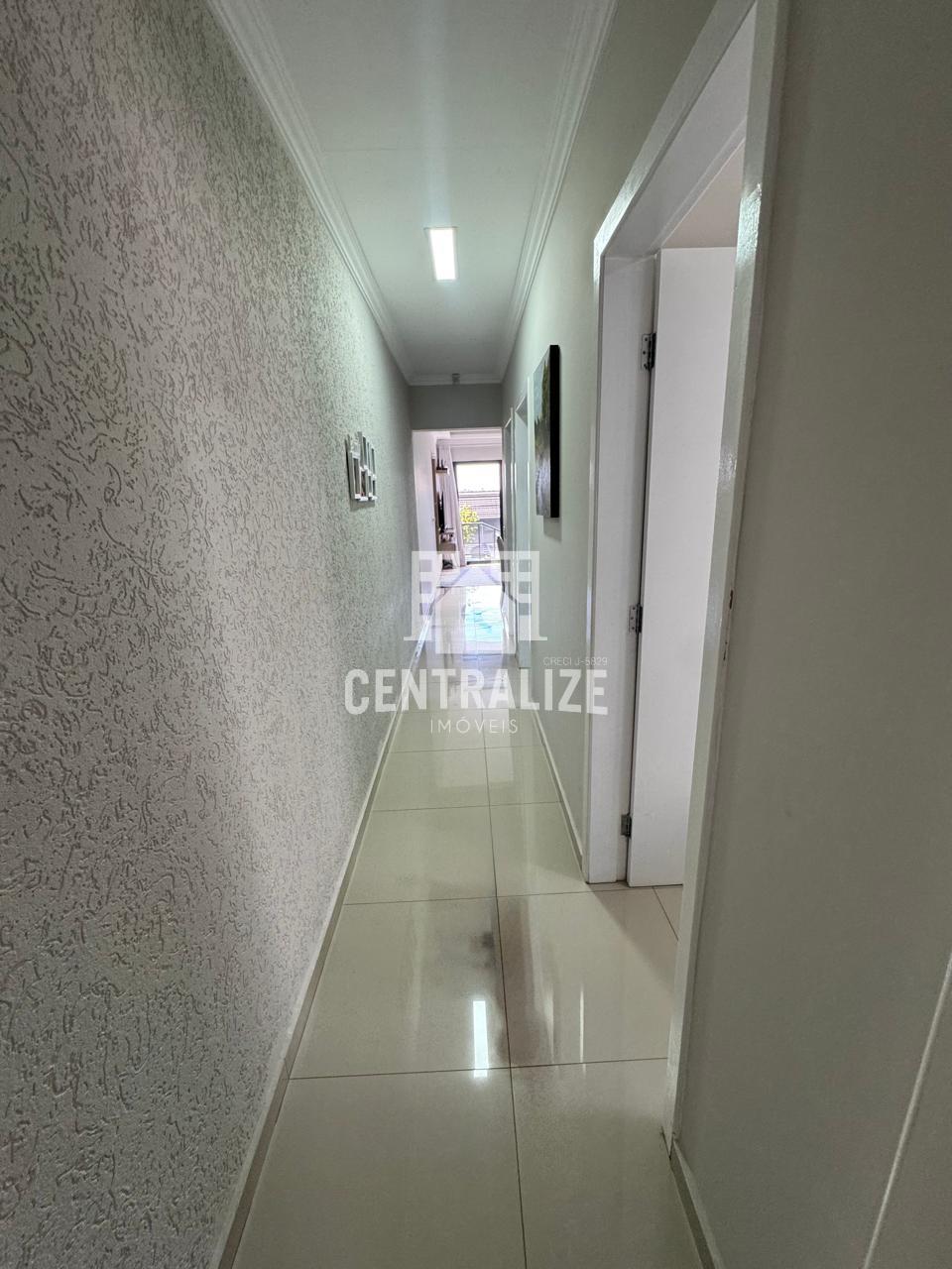 Excelente casa com 112 m² de área construída, o imóvel conta com três dormitórios, sendo uma suíte, um banheiro social, sala de estar ampla e bem iluminada, sala de jantar integrada e uma cozinha planejada que garante ótimo aproveitamento de espaço. Possui também área de serviço, lavanderia e uma área com churrasqueira, perfeita para momentos de lazer e confraternização. A casa dispõe de vaga de garagem para até três veículos. Analisa permuta.
