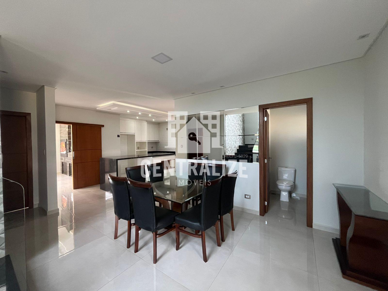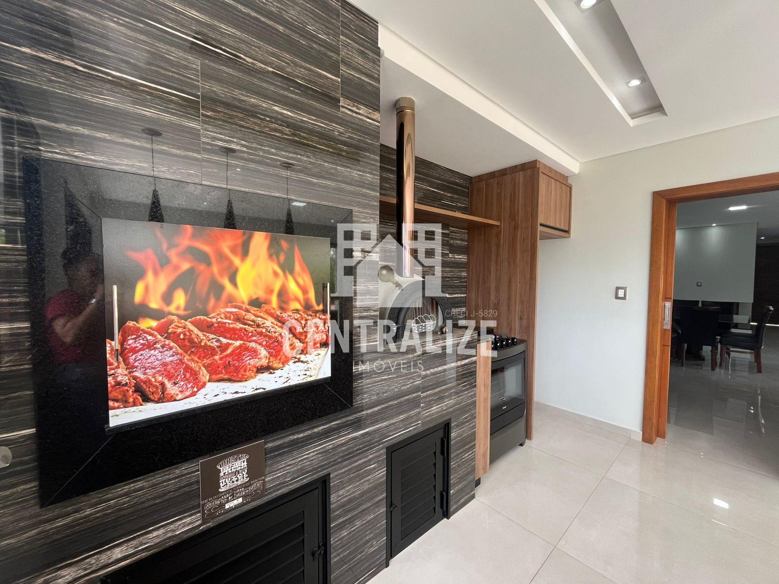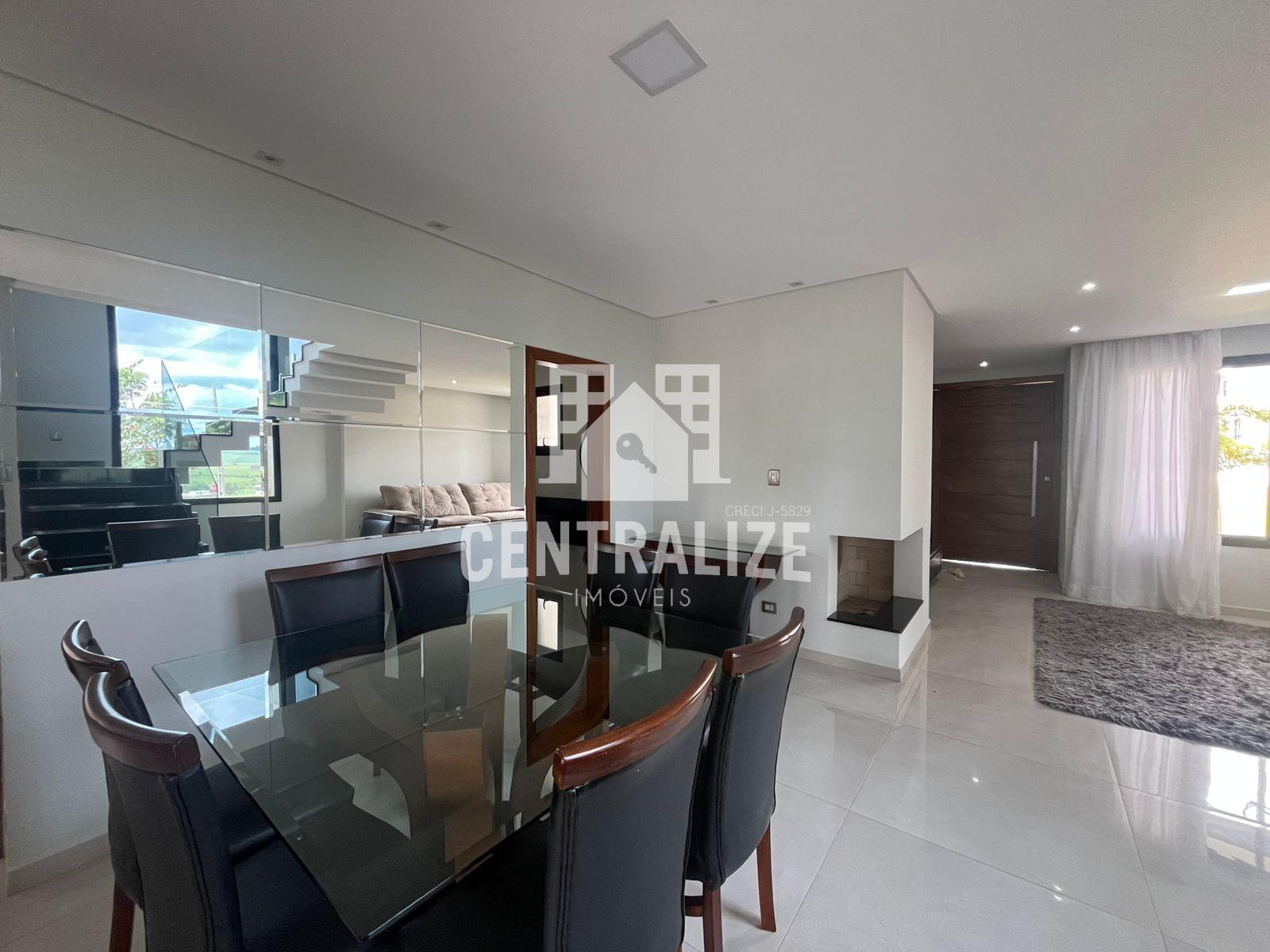 Excelente sobrado semi mobiliado com aproximadamente 313m² contendo 4 quartos sendo 2 suítes e 1 demi suíte, cozinha com planejados, área gourmet, lavabo, lavanderia, sala íntima, sala de TV, sala de jantar, garagem coberta p/ 2 carros. Portão lateral, sacada, lareira, despensa, escritório com planejados, closet e hidromassagem.