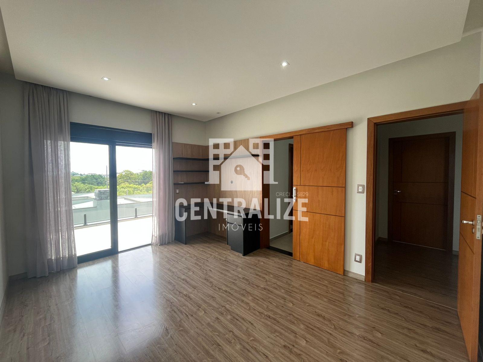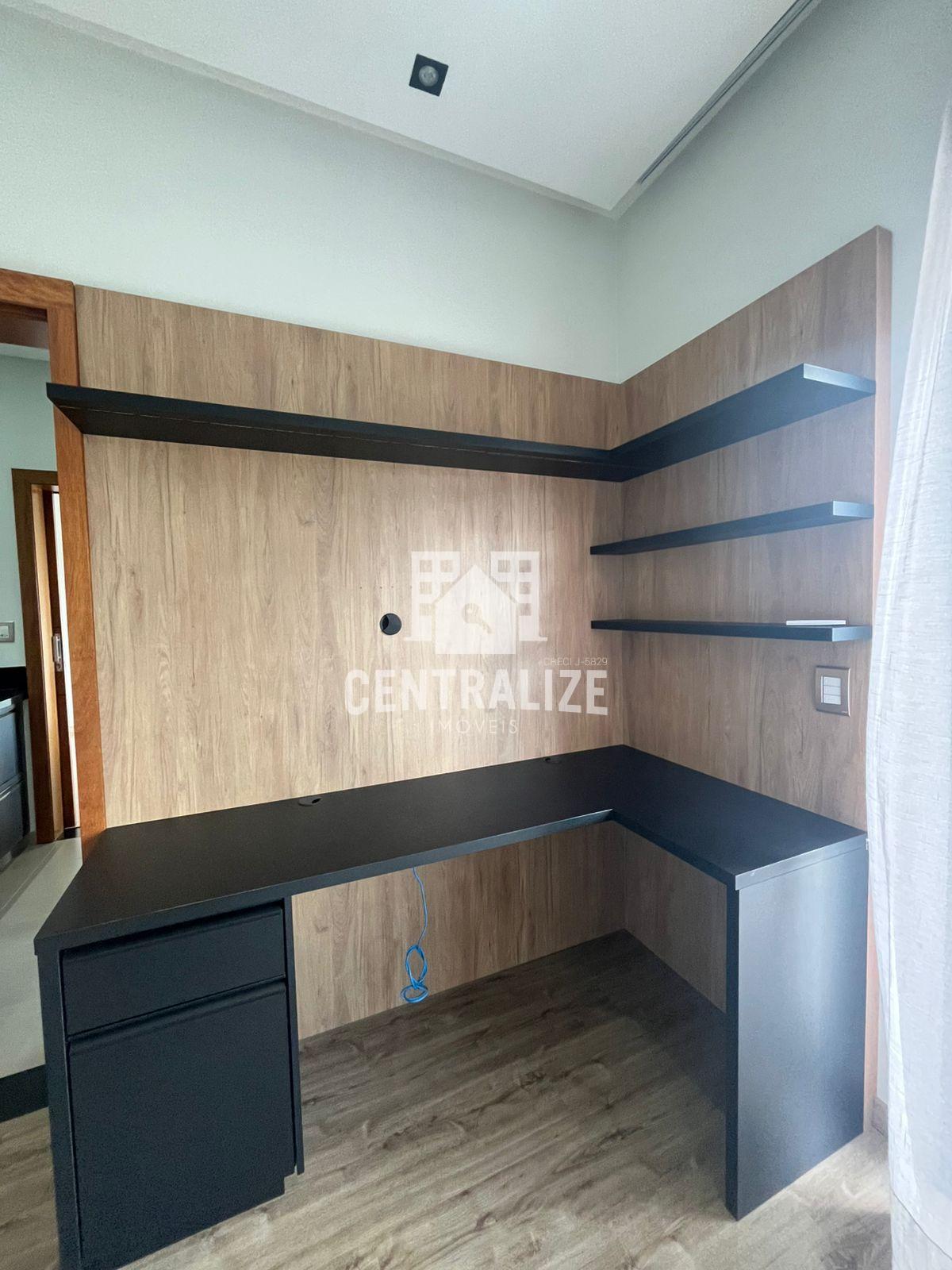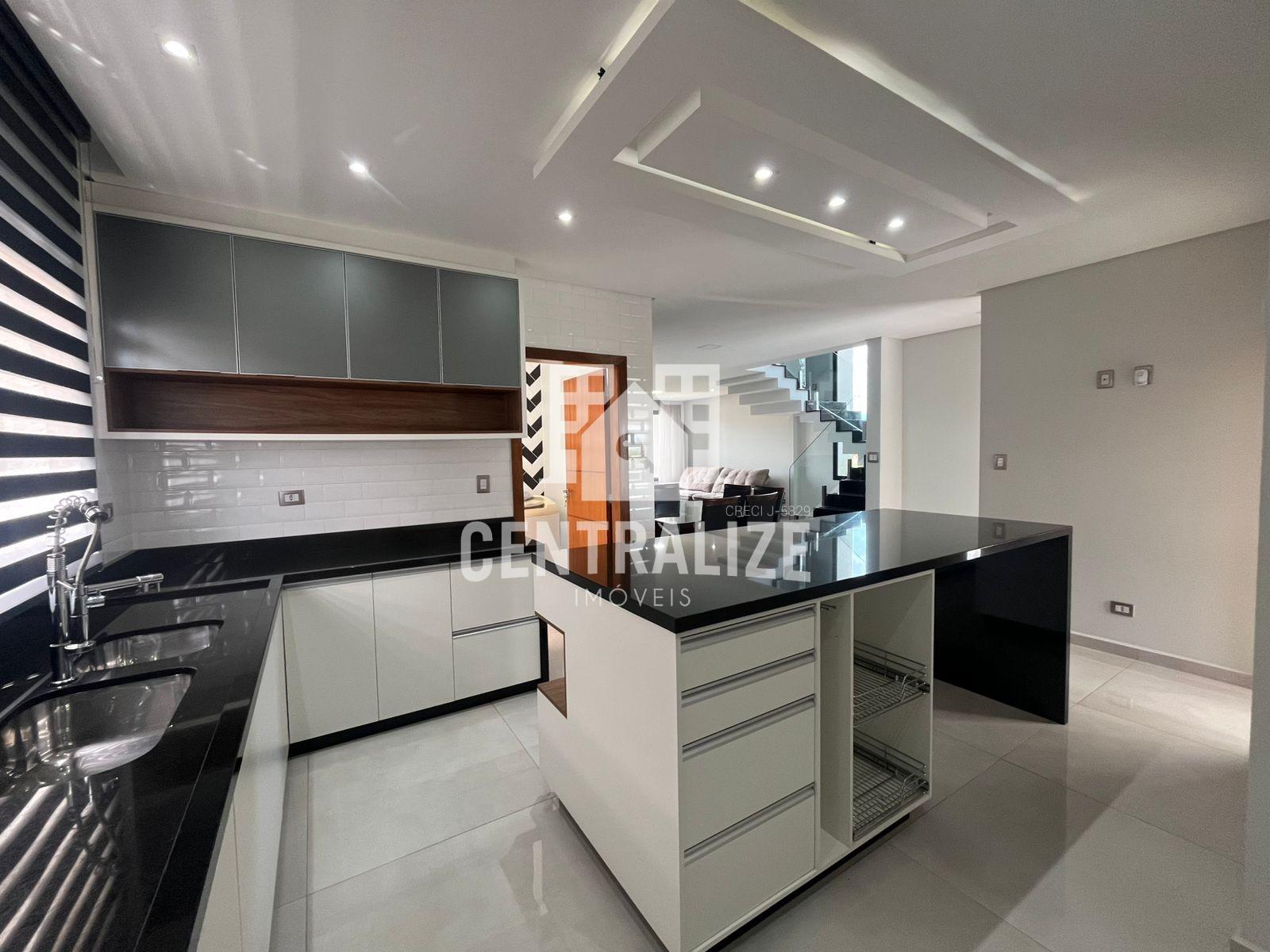 Excelente sobrado semi mobiliado com aproximadamente 313m² contendo 4 quartos sendo 2 suítes e 1 demi suíte, cozinha com planejados, área gourmet, lavabo, lavanderia, sala íntima, sala de TV, sala de jantar, garagem coberta p/ 2 carros. Portão lateral, sacada, lareira, despensa, escritório com planejados, closet e hidromassagem.