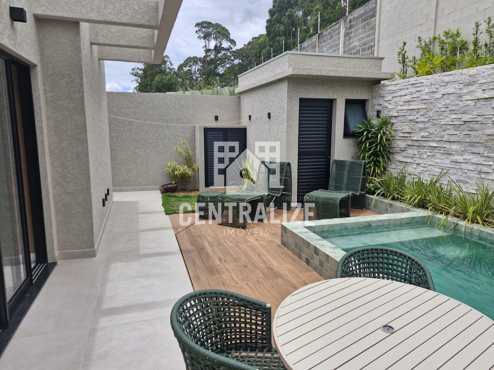 Suíte com piso aquecido no quarto e no bwc,3 bwc social completos.Sala visita, jantar, cozinha e churrasqueira conceito aberto.(Mobília da marcenaria Cauduro & Couto.)Lavanderia e dispensa, depósito externo,4 Ar condicionado nos quartos e sala.Piscina aquecida.Lareira a gás,02 vagas de garagem.Condomínio oferece: Bosque natural preservado, piscina,quadra poliesportiva,trilha,quiosque.